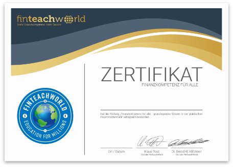 Investiere 497 Euro für deine finanzielle Kompetenz. Buche den Kurs „Finanzkompetenz für alle“ und erhalte nach bestandener Prüfung das offizielle Zertifikat der finteachworld!